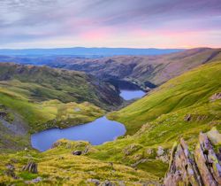 Direction plein nord aujourd'hui ! Notre itinéraire va nous faire explorer la partie nord du Lake District, région généralement moins fréquentée et plus sauvage avec deux cols et quelques pentes raides au programme. Nous sommes au royaume des moutons de montagne. Après le col de Wrynose (390m), nous admirons l'incroyable panorama sur Little Langdale, nous longeons la rivière Duddon, les paysages méritent une halte ! Nous passons les vestiges d'un fort Romain et faisons halte au château de Muncaster. Pour ceux qui préfèrent les châteaux hantés aux musées, ceci est un incontournable. En outre, les jardins sont magnifiques ! Après le lunch, nous croisons les Lodore Falls et le lac de Derwentwater bordé de rochers, on le tient souvent pour le plus lac d'Angleterre. Plus loin, nous sommes de retour dans la charmante vallée de Barrowdale et notre hôtel situé dans une clairière.